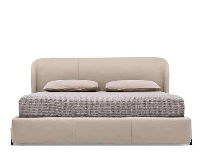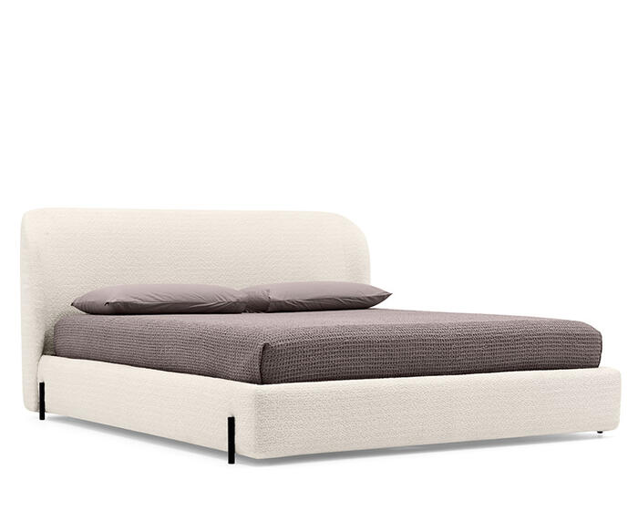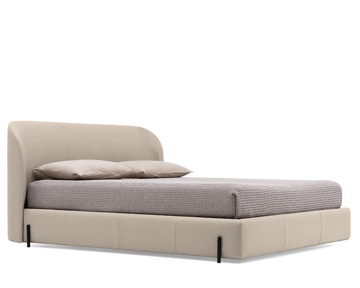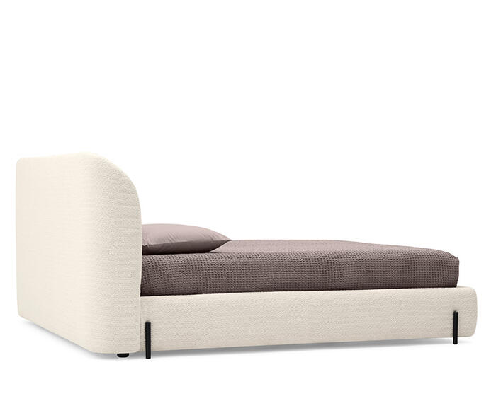 Inspired by the armchair of the same name, with which it creates a cohesive bedroom setting, Rendez Vous is distinguished by the visual lightness of its structure. The bed frame is raised on four slender feet, each refined with a metal detail that subtly accents the design. Fully finished, Rendez Vous combines graceful form with careful craftsmanship, allowing placement both against a wall or more freely within the space.