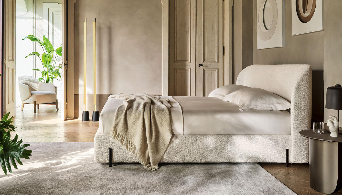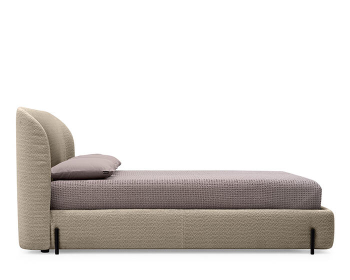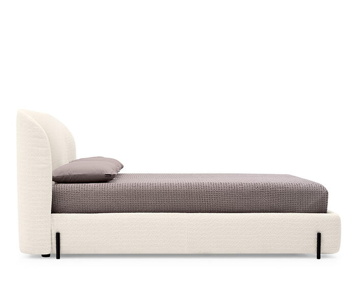 The backrest of the Rendez Vous bed takes its form from the corolla of a flower, unfolding in an elegant line that ends in a soft, upward curve. This sculptural gesture gives the headboard a light, expressive quality, while maintaining a sense of balance and restraint.