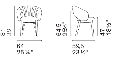 W 64 x D 59.5 x H 81 x HS 47 x HB 64.5 cm.