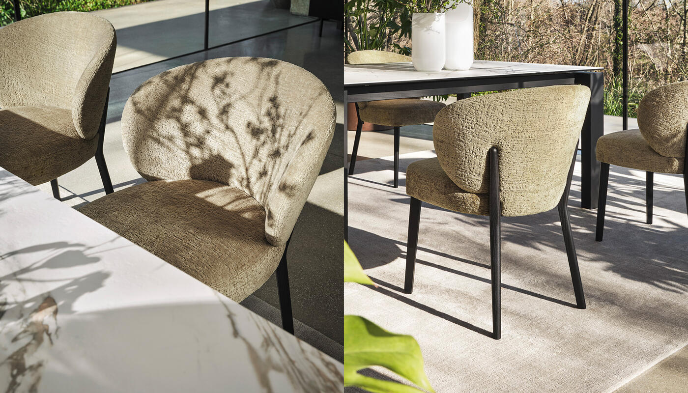 A spacious, comfortable seat that is as welcoming as any armchair could be. With the comfort provided by the wrap-around backrest and the elegant detail of the back legs that rise to provide support for the backrest, the Mara chair is at its best, making it the ideal companion for the dining table.