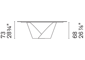 A prominent table, designed to be the centrepiece in the contemporary living space. Calla features a base that resembles a flower – robust yet light, it consists of two metal blades which, as petals do, interlock, creating a chalice shape that opens out upwards, alluding to vitality and rebirth.