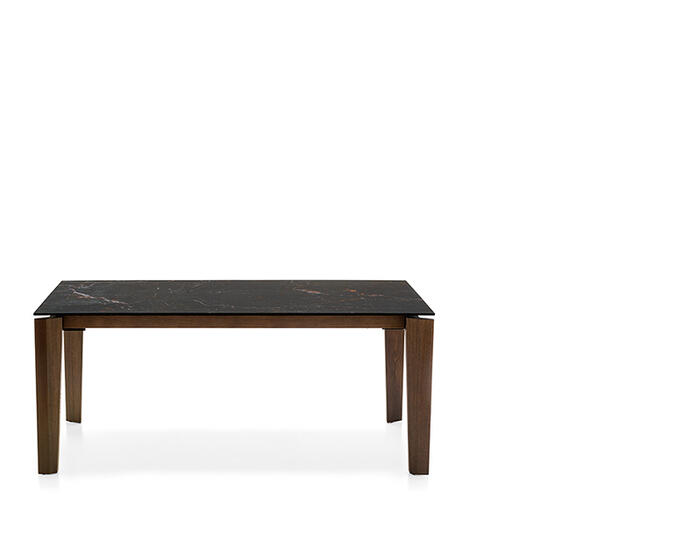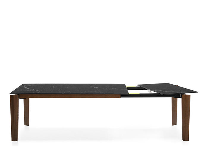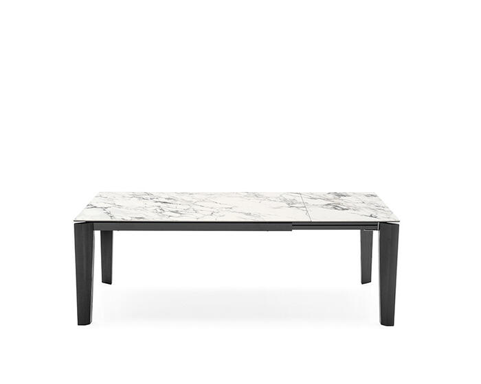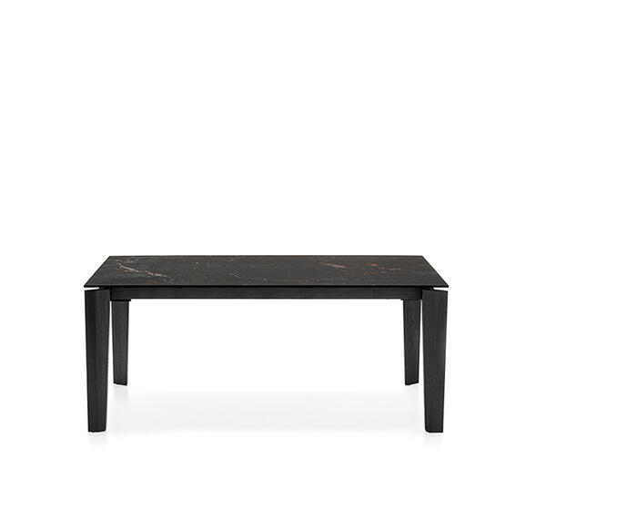 The ALPHA extendable table is a sophisticated addition, designed to meet the demands of modern, dynamic homes, enhancing daily living with style and convenience. Its versatility is a result of the harmonious pairing of wooden legs and a range of ceramic tabletop choices.