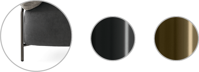 Quadrotta brings together the reassuring comfort of a classic armchair with a distinctly contemporary sensibility. Defined by a soft, enveloping backrest and a tall, generously padded seat, its design plays on subtle contrasts—smooth and plush, minimal and expressive. The metal frame, which follows the natural curve of the seat and backrest, adds a precise architectural note.