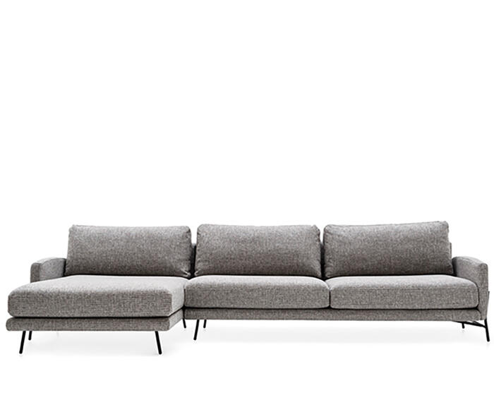 Thin armrests are softened by small cushions, adding comfort without interrupting the sofa’s clean profile. Available in a wide range of configurations—including fixed versions, central elements in multiple sizes, chaise longue, ottoman, and open-end—Le Marais offers generous freedom of composition, adapting naturally to both classic interiors and contemporary living spaces.