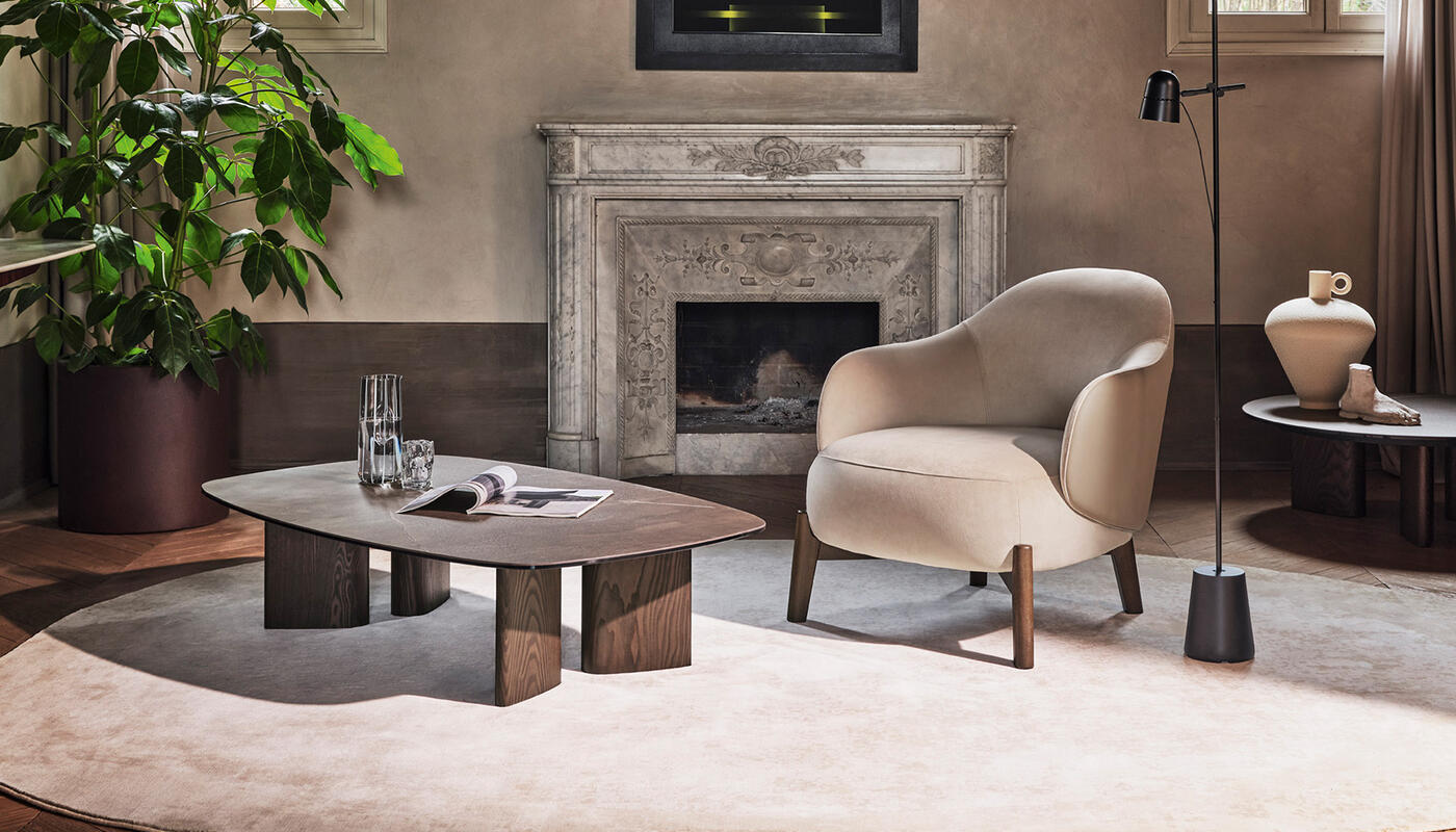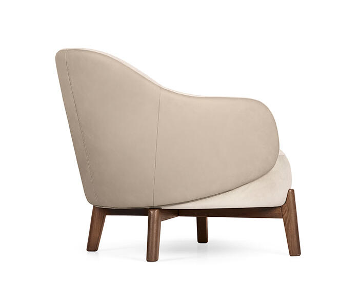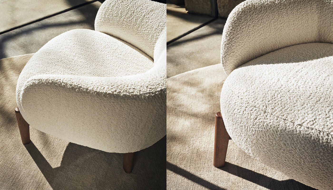 Holly Fab translates the soft elegance of the Holly family into a more generous, relaxed form. Inspired by 1950s design, the armchair is defined by a wrap-around backrest that flows seamlessly into the armrests, creating an open yet embracing silhouette. Expanded proportions enhance its leisurely character, while the subtly raised front foot adds a refined architectural detail. Designed for unhurried moments, Holly Fab balances comfort with a quietly expressive presence.