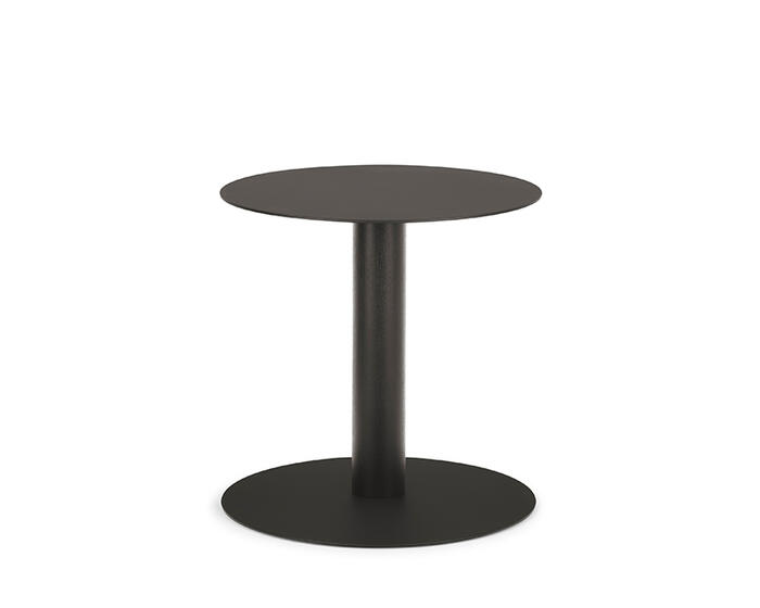 The Sandy side table with wooden pillar base is part of an extensive family that includes coffee tables and a console table, all defined by the collection’s distinctive teardrop-shaped leg. In this version, the sloping cross-section is translated into a central pillar, giving the base a strong three-dimensional presence.
