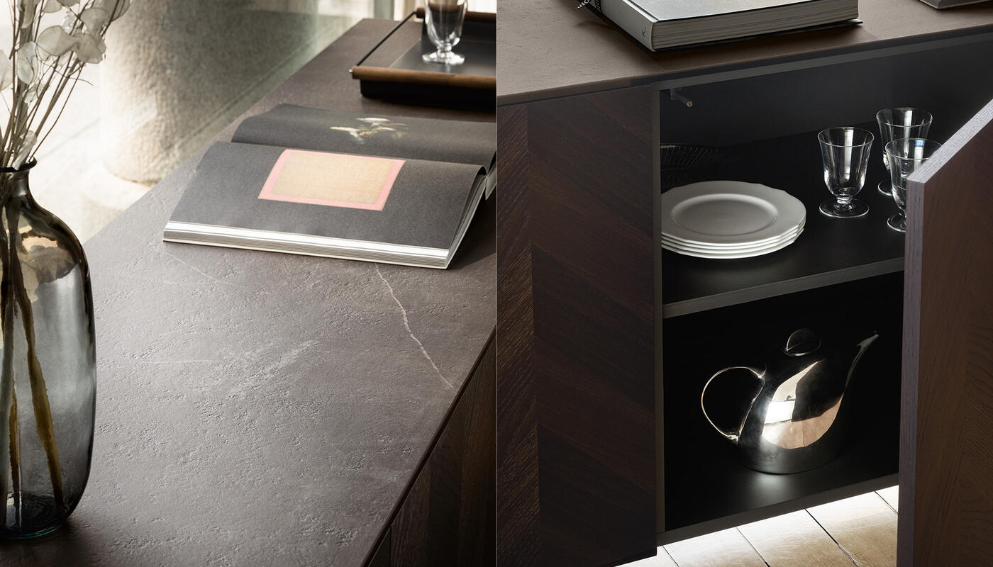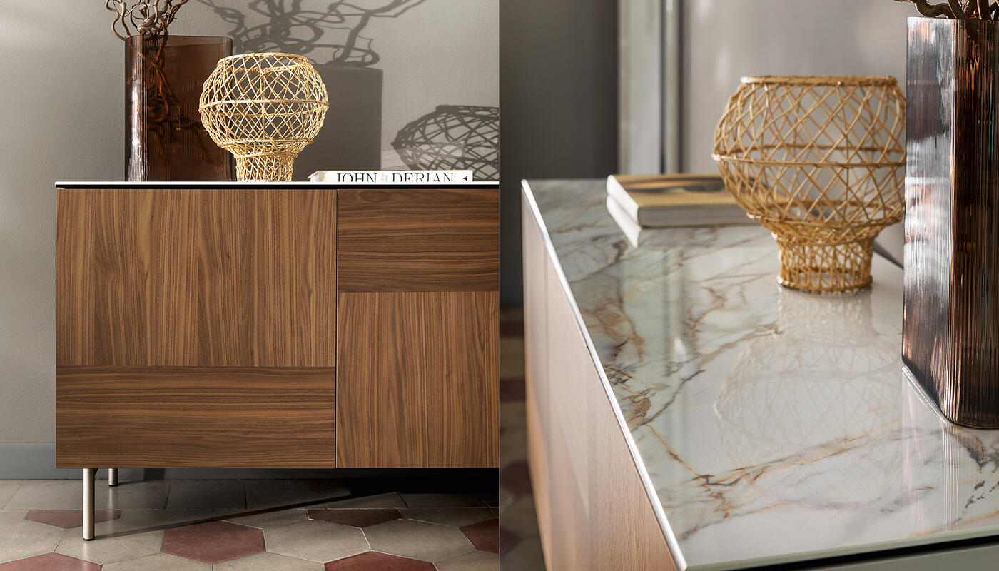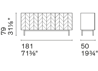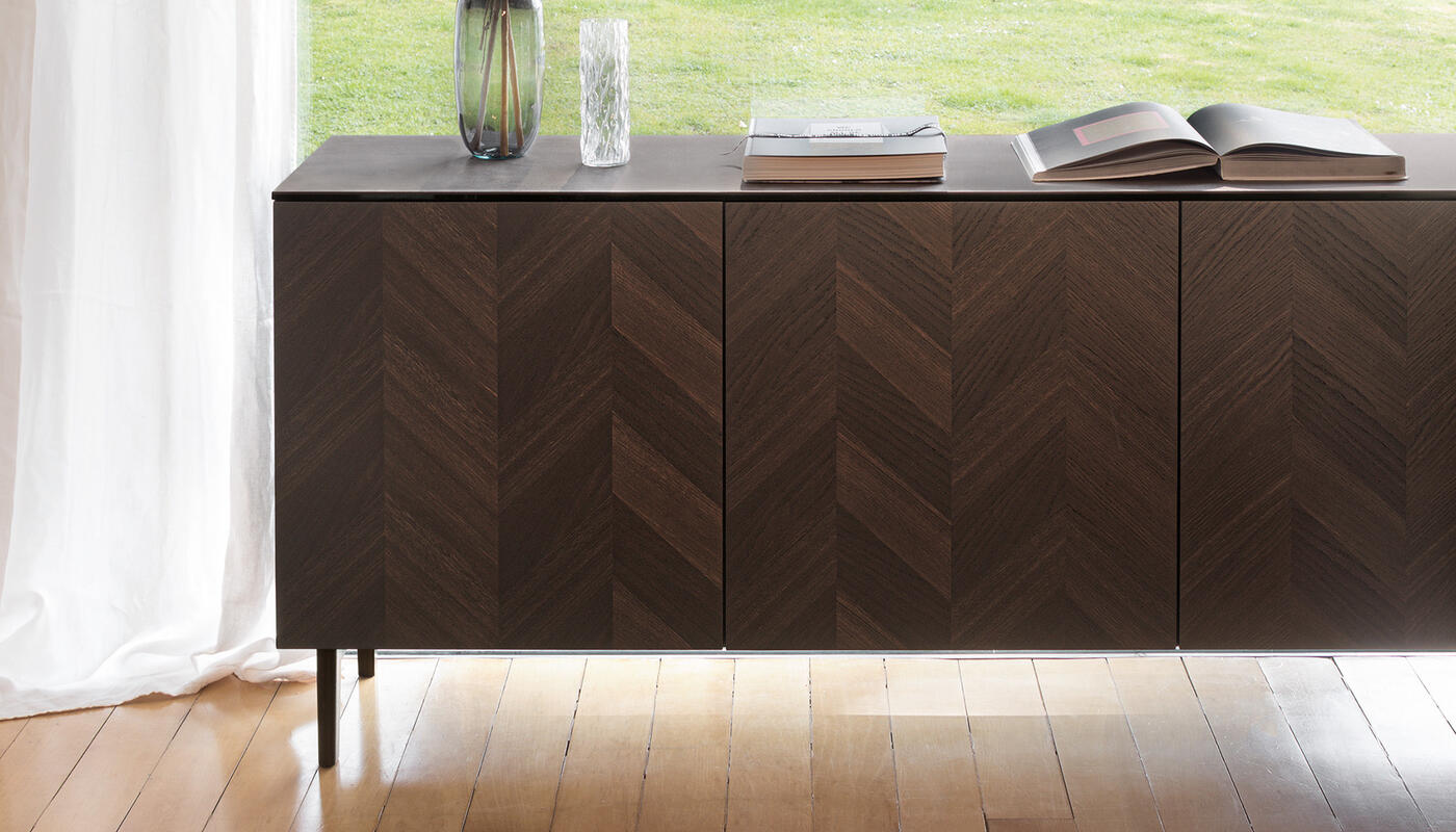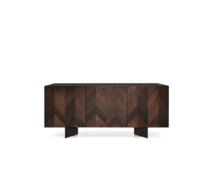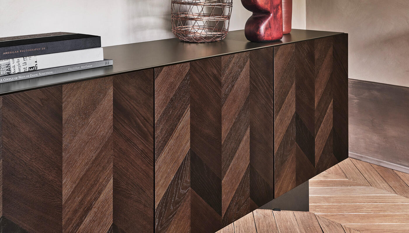 Intarsi brings the tradition of fine woodworking into a contemporary setting. The patterned inlaid front recalls the precision and artistry of marquetry, where individual elements come together to form a unified surface rich in texture and nuance. Wood takes center stage here, lending warmth and a sense of permanence to the design.